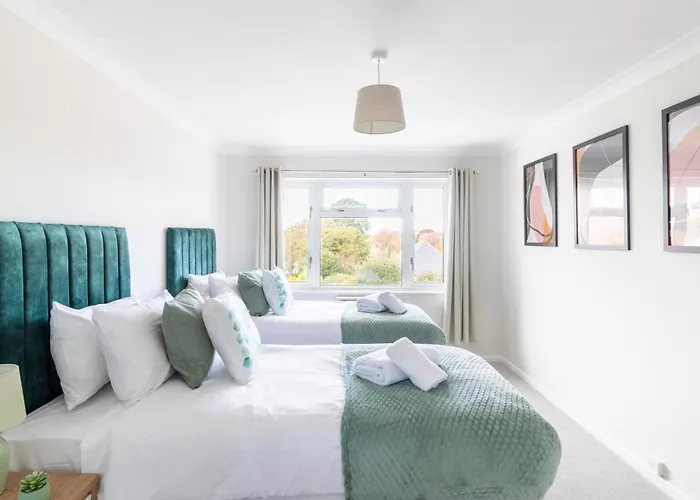 The spacious Stunner Sea View 2 Bedroom Sleeps 6-Free Parking Bournemouth apartment is a great place to stay in the Boscombe district, 20 minutes' walk from Boscombe Chine Gardens. Wi-Fi is available for guests' business or leisure needs.